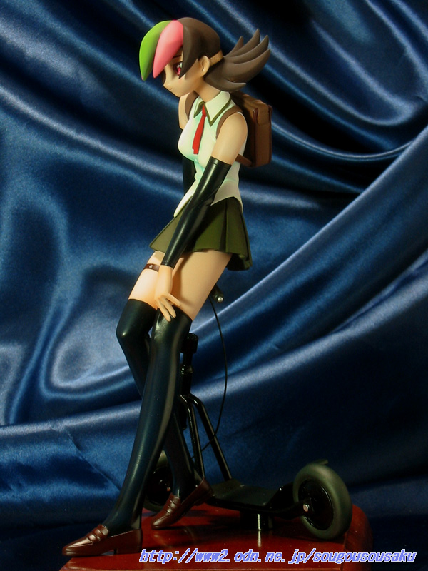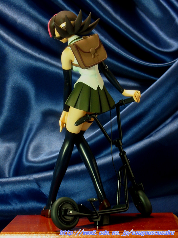 キックスクーターにもたれかかった珍しいポーズです。